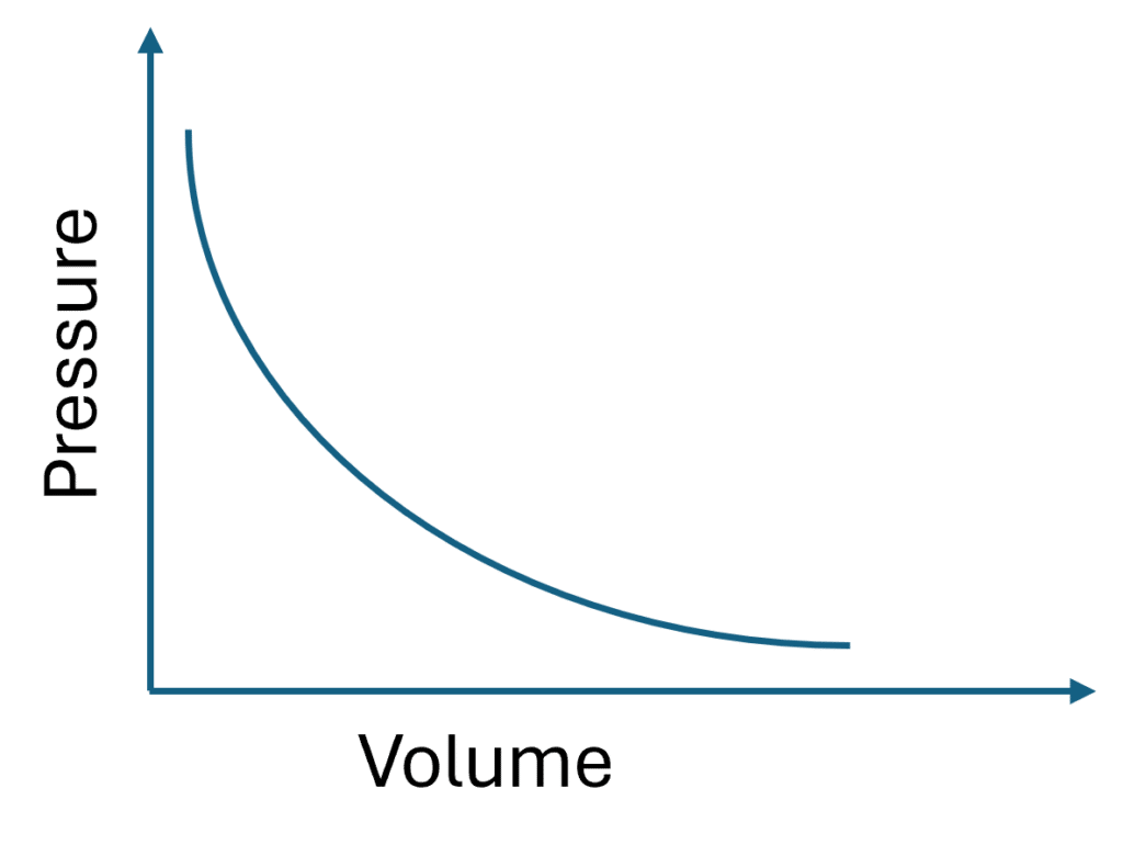 Given the daily use of gases by anaesthetists, it follows that an understanding of how gases behave, as dictated by the gas laws, is necessary for the Primary FRCA. Here on TeachMeAnaesthetics, we aim to cover the absolute key details of high yield exam topics, which can then be supplemented with further reading as needed. In this article, we will discuss the gas laws, and demonstrate their clinical relevance where appropriate. The Ideal Gas Firstly, it is important to acknowledge that the gas laws only truly apply to the ‘ideal gas‘. Unhelpfully, the ideal gas does not exist. However, if it did, it would have the following characteristics: All collisions are elastic and frictionless The molecules move in random directions at a distribution of speeds There are no attractive or repulsive forces between gas molecules The molecules of gas are small, hard spheres Boyle’s Law The first gas law is Boyle’s law, which states: “At a constant temperature in a sealed container, the volume of a gas is inversely proportional to its pressure.” Simply put, as pressure increases, the volume decreases, and vice-versa. By TeachMeSeries Ltd (2025) Figure 1Boyle’s law Charles’ Law The second gas law is Charles’ law, which states: “At a constant pressure, the volume of a gas is directly proportional to its temperature.” Effectively, Charles’ law describes a linear relationship between volume and temperature. By TeachMeSeries Ltd (2025) Figure 2Charles’ law Gay-Lussac’s Law The third gas law is Gay-Lussac’s law. This one says: “At a constant volume, pressure and temperature are directly proportional.” Again, this describes another linear relationship; just this time it is pressure and temperature. By TeachMeSeries Ltd (2025) Figure 3Gay-Lussac’s law The Ideal Gas Law Through mathematical manipulation (available here on Wikipedia for the mathematically inclined), the above three laws can be combined into the ideal gas equation. This one states: PV = nRT where P = pressure (Pascals), V = volume (m3), n = no. of moles of the gas, R = molar gas constant, and T = temperature (Kelvin) This is sometimes also written as: P1V1/T1= P2V2/T2 Dalton’s Law Dalton’s law is relatively simple, and states that the pressure of a gas is the sum of the partial pressures of each of its constituent gases. This is of particular relevance when discussing the effects of altitude on the delivery of volatile agents, but an explanation of this somewhat confusing topic is beyond the scope of this article. A good discussion of the topic can be found in Chapter 77 of The Primary FRCA structured oral examination Study Guide 1, 2nd edition, Wijayasiri and McCombe, 2016. Henry’s Law Henry’s law states that the partial pressure of a gas above a liquid is directly proportional to the amount of gas dissolved within said liquid, at a given temperature. This explains why bubbles exit fizzy drinks when the cap is removed. With the cap shut and the system closed, the partial pressure of carbon dioxide is high and is in equilibrium with dissolved carbon dioxide. Upon removal of the cap, the partial pressure of carbon dioxide rapidly drops, thus shifting the equilibrium and allowing bubbles to exit from solution. Suggested Reading Chapter 53. The Primary FRCA structured oral examination Study Guide 1. 2nd edition. Wijayasiri and McCombe. 2016. Pages 34-35. Physics, Pharmacology and Physiology for Anaesthetists. Key Concepts for the FRCA. 2nd edition. Cross and Plunkett. 2014. Sections 5.12, 5.13 and 5.16. Graphic anaesthesia: Essential diagrams, equations and tables for anaesthesia. 2nd edition. Hooper, Nickells, Payne, Pearson and Walton. 2023. Rate This Article